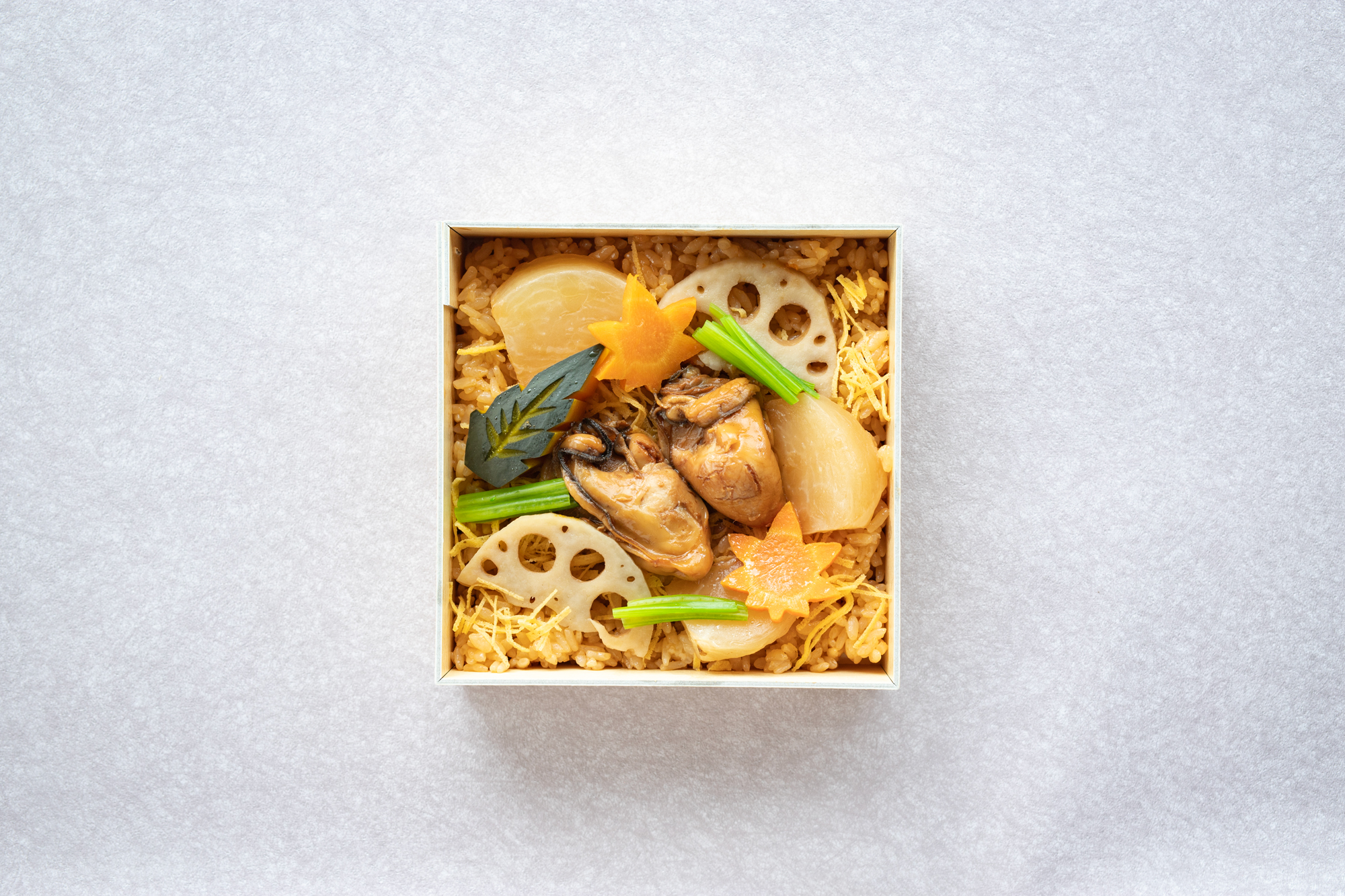 口取り、揚げ物、煮物、月替わり炊き込みご飯