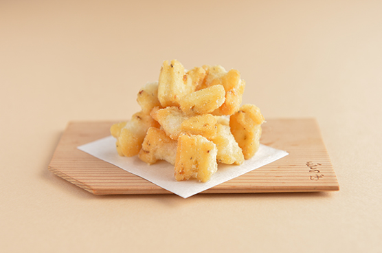 餅を小さく欠き(切り)、乾燥させた後、表面がきつね色になるまでじっくり揚げた昔ながらの米菓です。